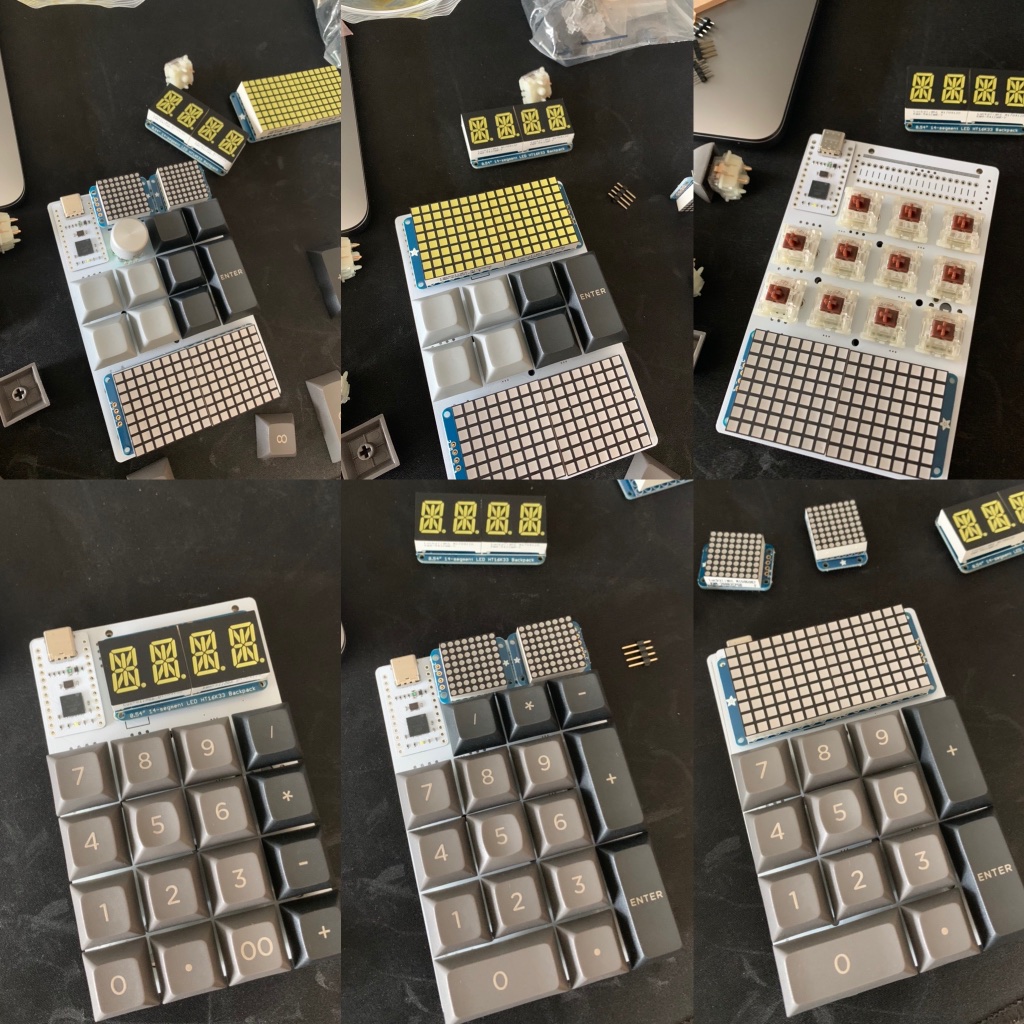 Builds aren't limited to one of these options. Most (but not all, list here) options can be mixed and matched. There's no real limit to the weirdness. Want a macropad with nothing but LED matrices? Go crazy.